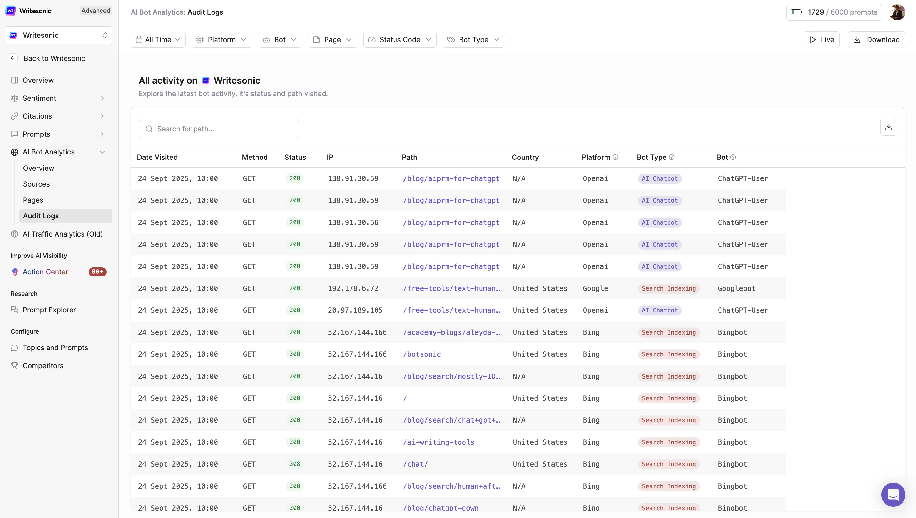 The Audit Logs provide granular, row-level data for every bot interaction with your site.
