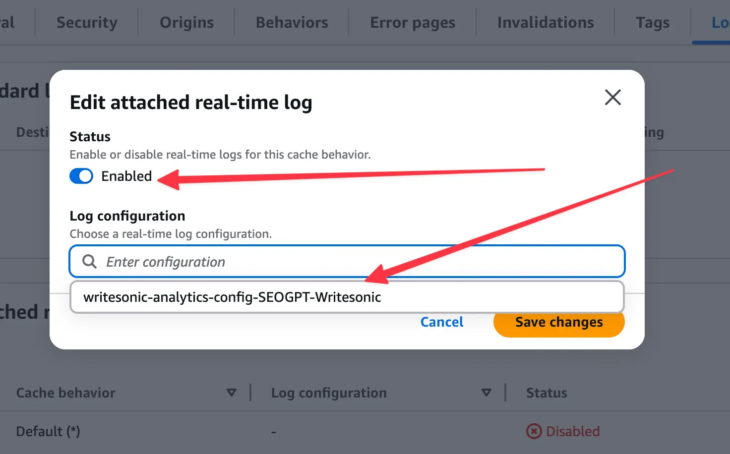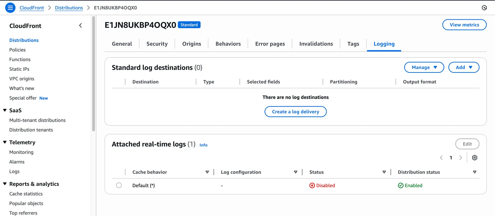 - Real-time logs should be “Enabled” on your CloudFront distribution