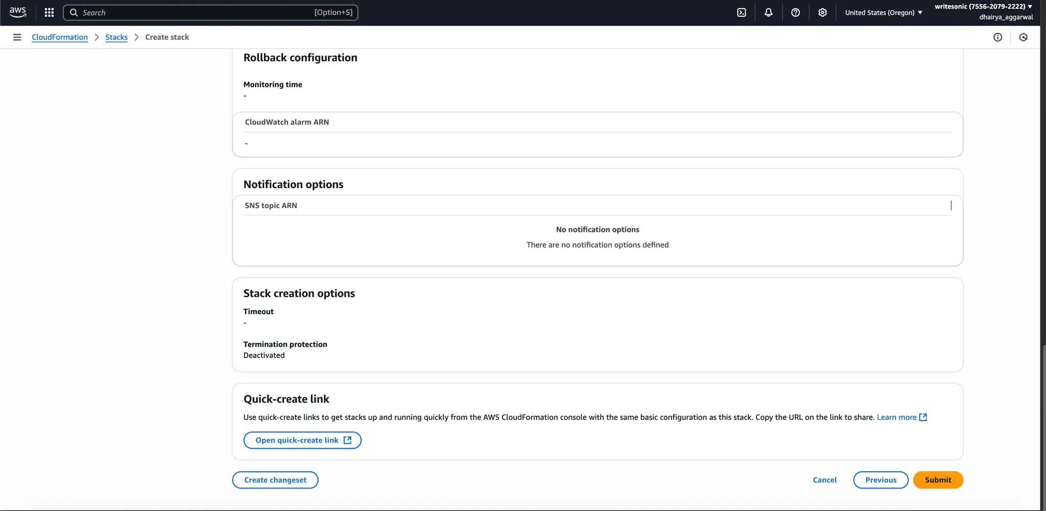 - Click “Submit” to create the stack