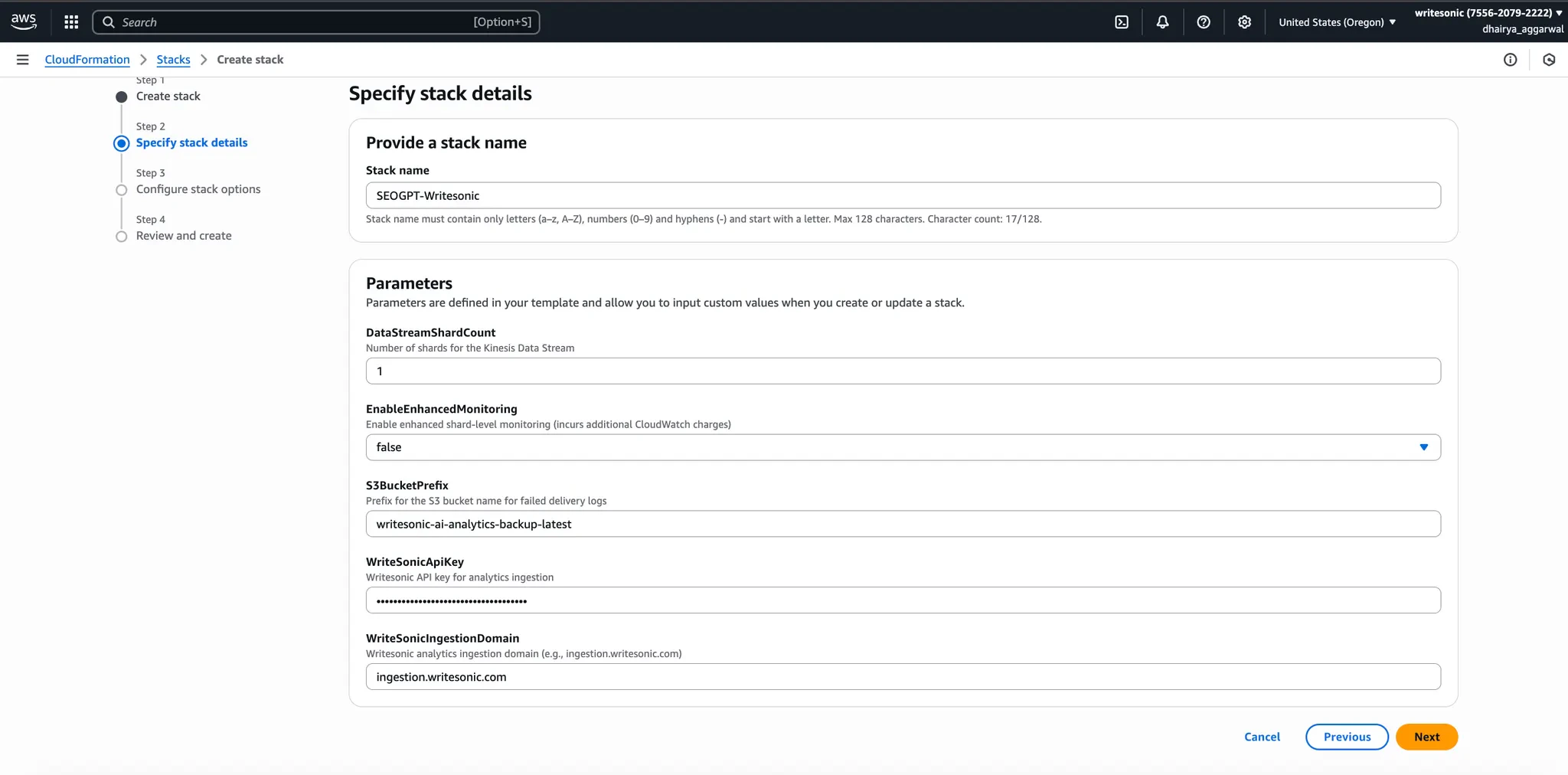 - CloudFormation Errors: Verify that all parameters are entered correctly, especially the Writesonic API Key