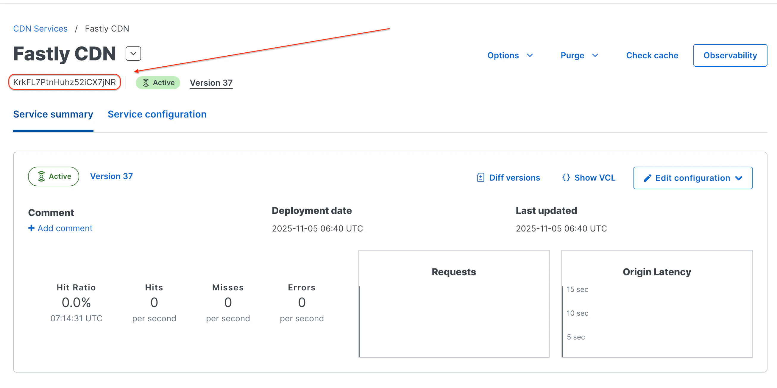 - Copy the Fastly Service ID from your service dashboard