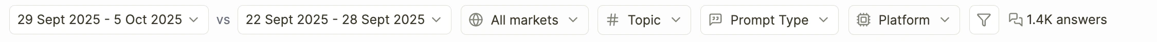 - Topics — Narrow down to specific topics configured during your GEO setup.
