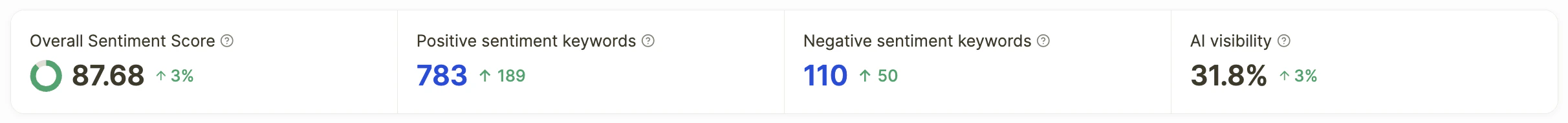 At the top of the page, you’ll see four high-level metrics that give you an instant snapshot of your brand’s sentiment health: