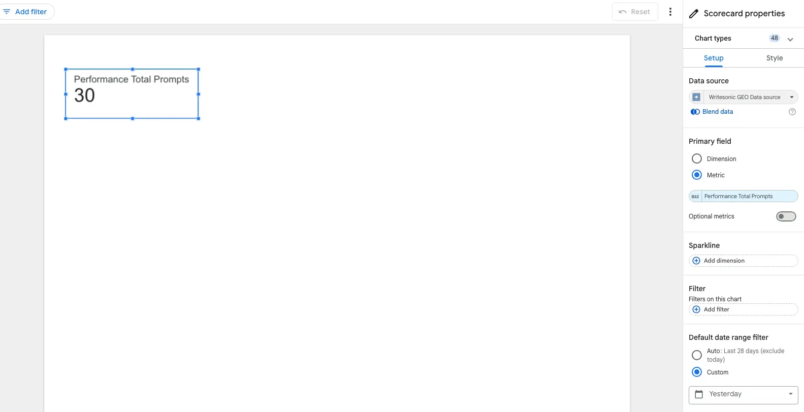 Let’s build a dashboard that answers: “How is our AI visibility performing?”Step 1: Create the Data Source